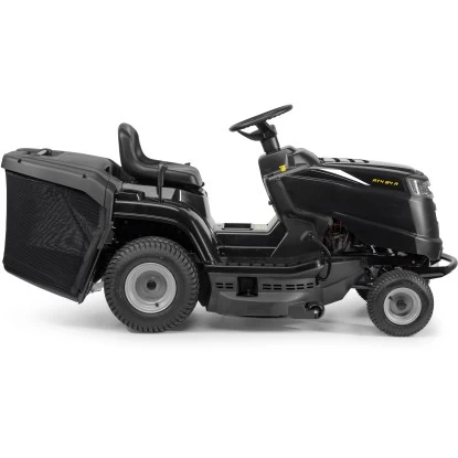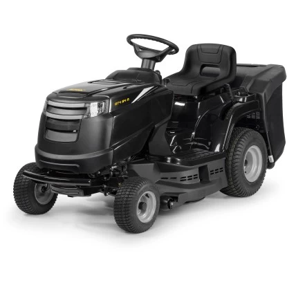 Der Alpina Rasentraktor AT4 84 A sorgt mit seinem kleinen Wendekreis und einer Geschwindigkeit von bis zu 9,7 km/h für Spaß bei der Rasenpflege. Angetrieben wird er von einem ST 350 Motor (Powered by Stiga) mit 5,8 kW/7,9 PS bei 2.400/min (Umdrehungen) und einem Hubraum von 352 cm³, der durch konstante Leistung und Langlebigkeit überzeugt. Das Mähwerk ist mit zwei gegenläufigen Doppelmessern ausgestattet und kann bequem über die elektromagnetische Kupplung zugeschaltet werden.