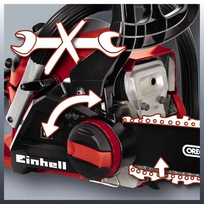 Die Einhell Benzin-Kettensäge GC-PC 1335 I TC ist ein handliches, leistungsstarkes Gerät das sich beim Sägen von Brennholz, beim Auslichten sowie beim Fällen und Entasten als zuverlässiger Helfer erweist. Ein Qualitätsschwert und -kette von Oregon sorgen für eine optimale Schnittleistung. Dank Choke und Primer lässt sich der Motor stets mühelos starten. Die Kette lässt sich werkzeuglos spannen und wechseln.