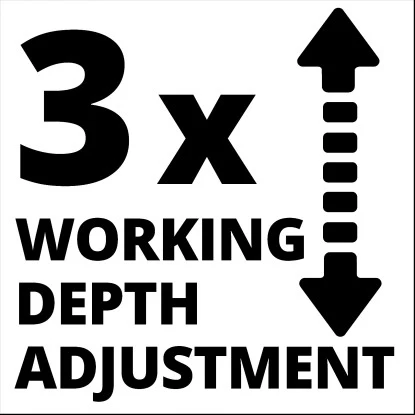 Dank Arbeitstiefeneinstellung in drei Stufen lässt sich der Vertikutierer gut auf die Anforderungen von Boden und Bewuchs einrichten. Eine zusätzliche Parkposition schützt zuverlässig die Messer und gleichzeitig den Untergrund. Die großflächigen Räder erleichtern das Arbeiten in unwegsamen Gelände und schonen dabei den Rasen. Das Gerät verfügt über ein robustes Gehäuse aus hochwertigem, schlagzähem Kunststoff. Dank klappbarem Führungsholm lässt sich der Vertikutierer platzsparend unterbringen. Das Gerät eignet sich für Rasenflächen bis ca. 300 m² empfohlen.