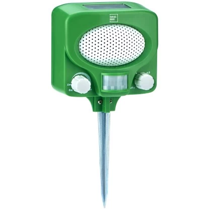 Der Swissinno Ultraschall-Tiervertreiber vertreibt auf besonders einfache Weise lästige Nagetiere, Katzen, Hunde oder anderes unliebsames Getier aus Ihrem Garten. Die leistungsstarken Ultraschallwellen lassen sich individuell steuern und schützen zuverlässig eine Fläche von ca. 100 m². Gezielter LED-Lichtstrahl dient als zusätzliche Abschreckung und kann separat zum Ultraschall zugeschalten werden. Über das Solarpanel werden die Akkus geladen. Montiert kann der Tiervertreiber mittels Bodenspieß oder Wandhalterung werden.